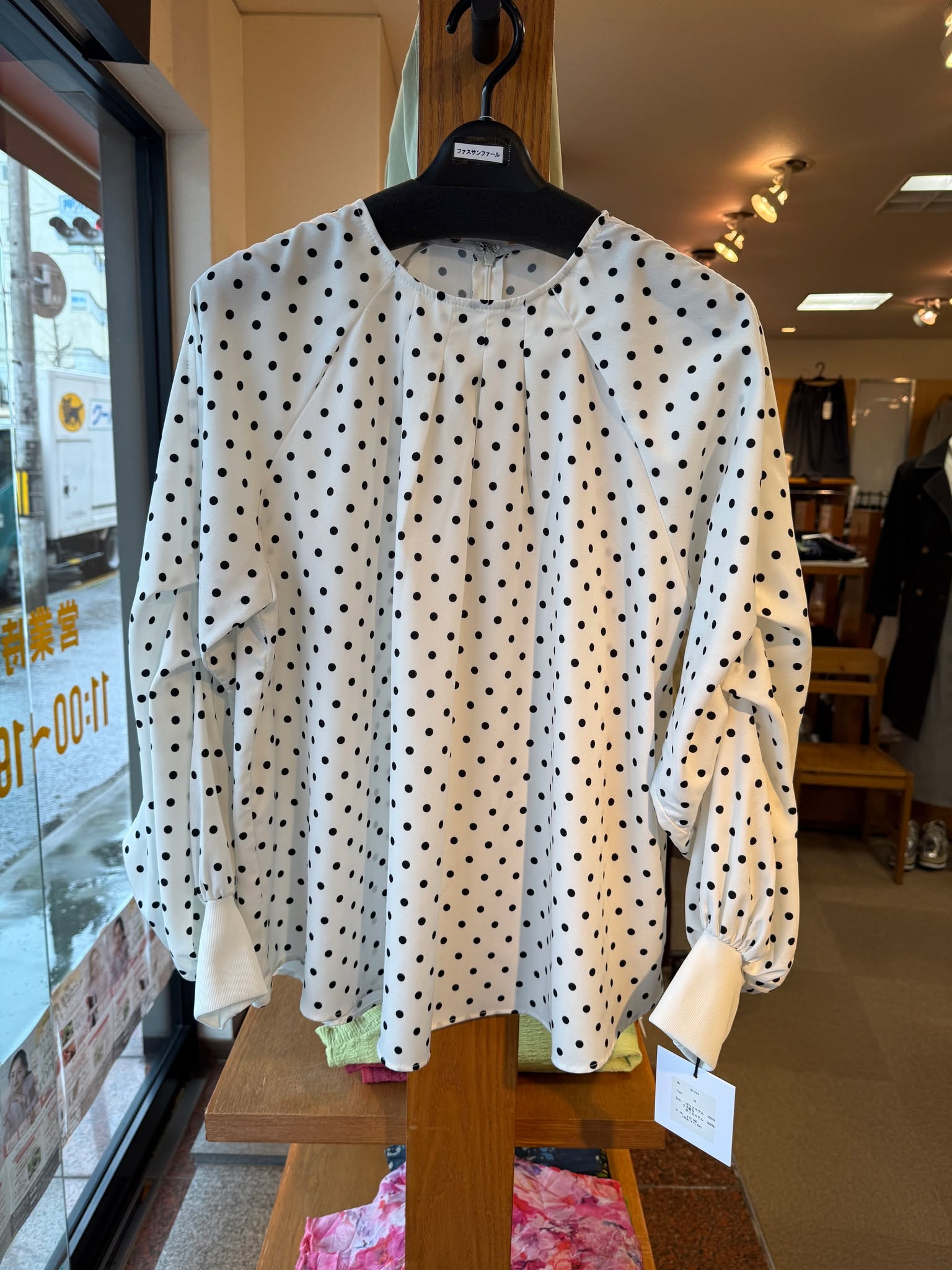 リブ袖水玉ブラウス