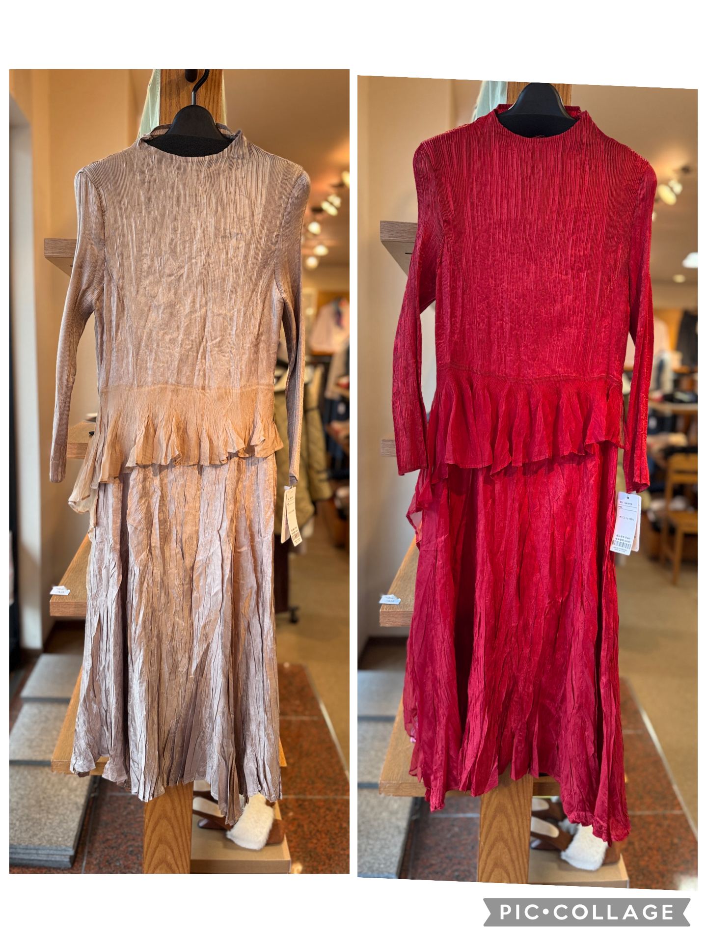 プリーツ加工ワンピース